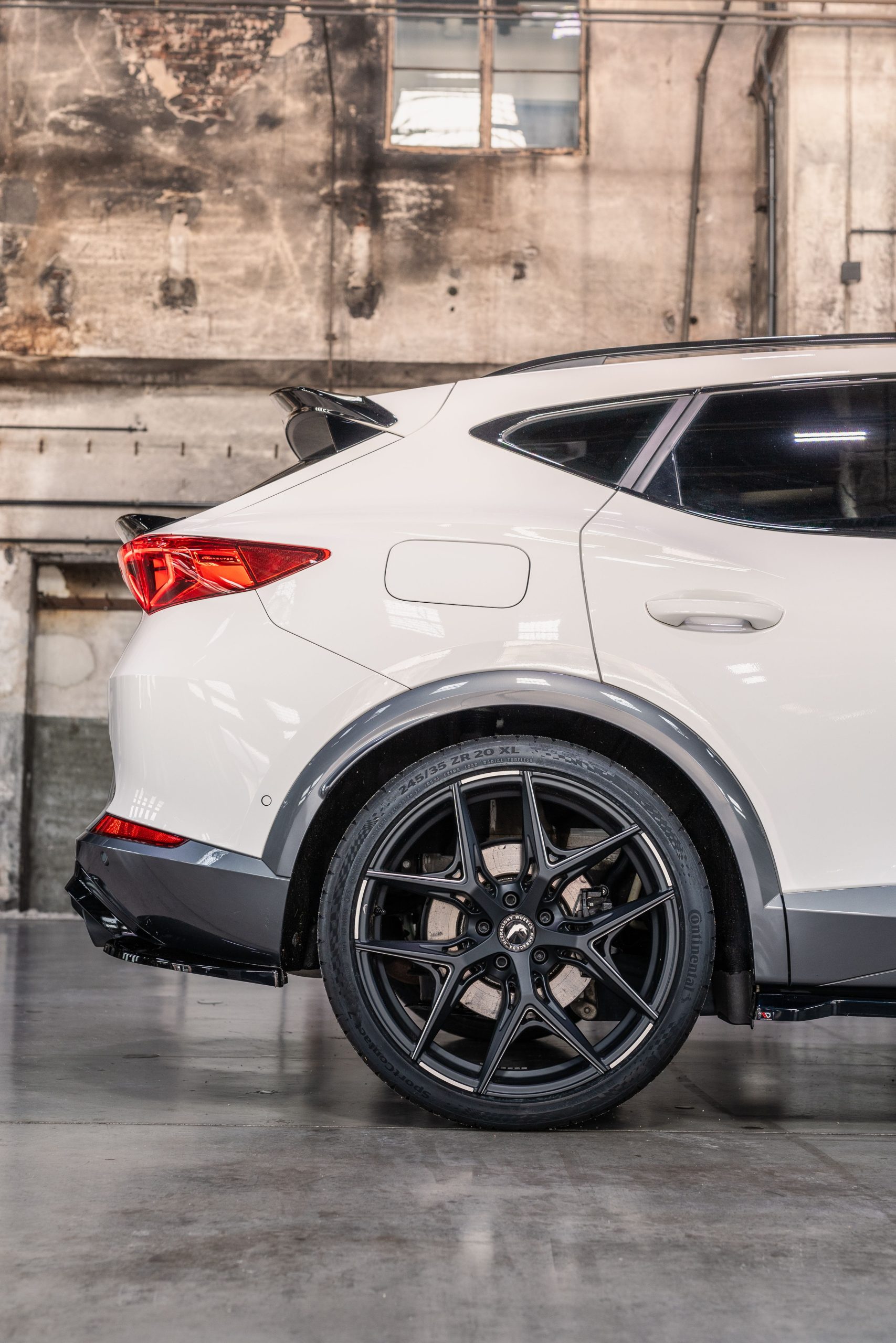 Predstavljeni Formentor koristi gume Continental SportContact 7 veličine 245/35R20 za održavanje kontakta s cestom. Izvrsno poravnanje kombinacije kotača i guma ispod lukova kotača zahvaljujući spuštanju od 35 milimetara, što je postigla tvrtka JMS Fahrzeugteile pomoću posebnih opruga H&R. Ove opruge, u kombinaciji s tvorničkim amortizerima, također obećavaju poboljšane performanse.