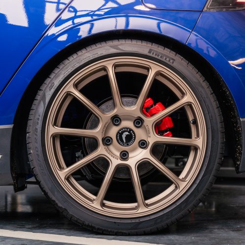 Kotači su upareni s gumama Pirelli P Zero u dimenziji 215/40R18. Spuštanje vozila, koji smanjuje visinu vožnje za oko 35 milimetara, postignut je Eibach oprugama.